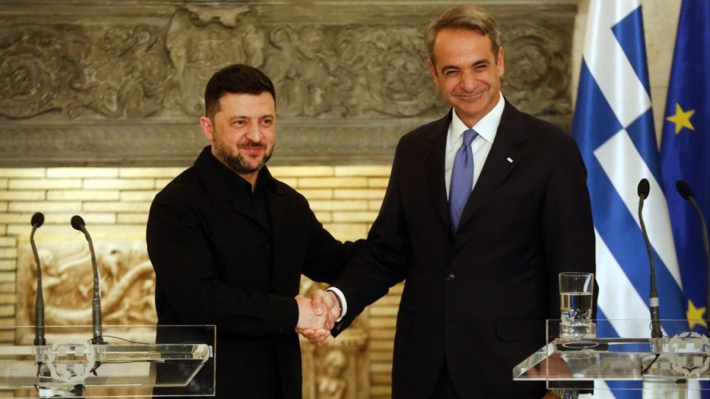 Зеленски и гръцкият премиер Кириакос Мицотакис присъстваха на подписването на сделката между гръцкия доставчик на газ DEPA и украинската Naftogas, както и посланикът на САЩ в Гърция Кимбърли Гилфойл.