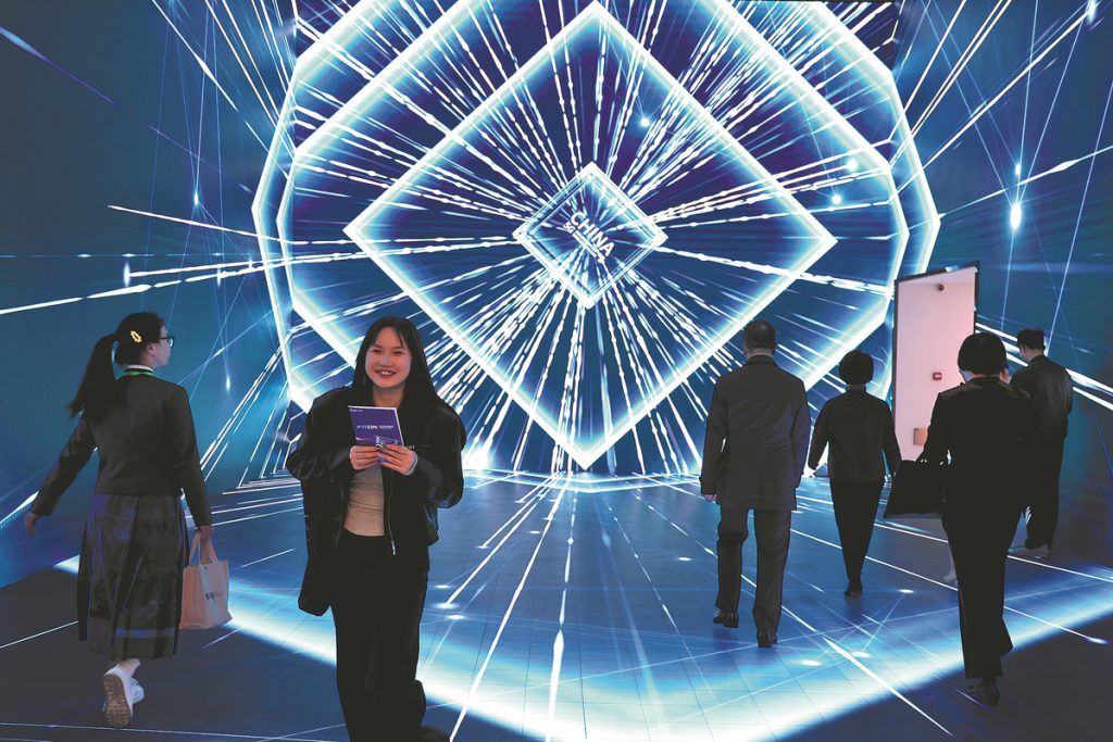 Посетителите се събират на Световната интернет конференция през 2024 г. и светлината на интернет изложението във Вужен, провинция Жеджианг. Wang Jing/China Daily