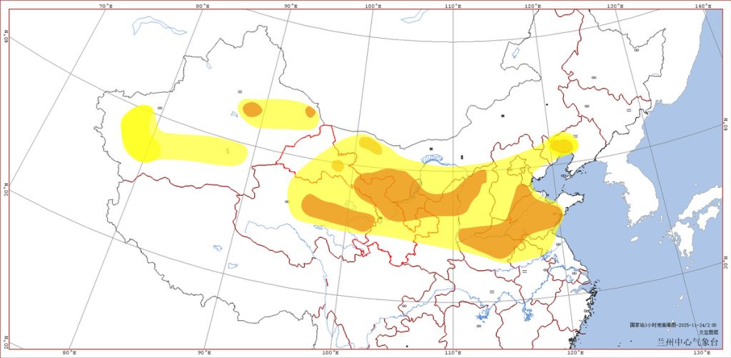 Модели на прах в северен Китай от 23 до 24 ноември. [Photo provided to chinadaily.com.cn]