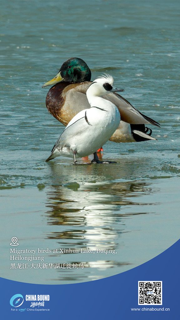 Ледът започва да се топи в езерото Синхуа в Дакинг, провинция Хейлундзян, докато мигриращите птици се завръщат със сезона, внасяйки живот в тихите зимни води. Техните отражения блестят върху чистата повърхност, рисувайки спокойна сцена, която улавя необятността, обновяването и надеждата за пролетта в северен Китай.