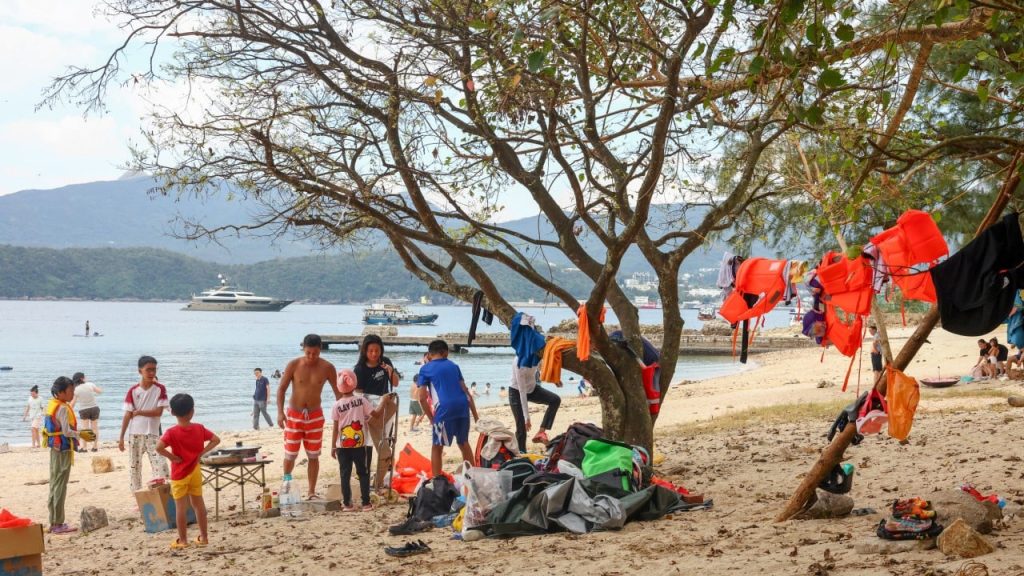 „Дойдохме тук, защото е безплатно и наоколо няма диви свине“, каза мъж, преименуван на Леонг, който е лагерувал на остров Шарп в продължение на две нощи със семейството и приятелите си.
