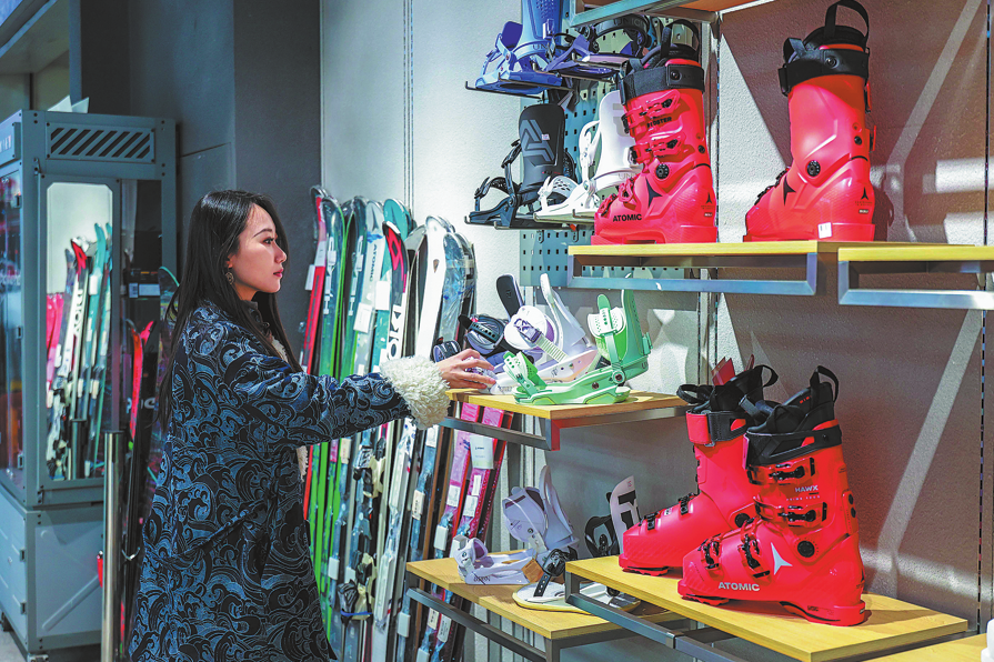 Потребител проверява ски екипировка в магазин в Хоххот, автономен регион Вътрешна Монголия, на 7 декември. DING GENHOU/ЗА КИТАЙ ДАЙЛИ