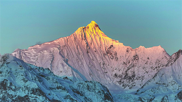 Снежната планина Мейли в Юнан, окъпана в сутрешна слънчева светлина на Нова година. LI CHUNLEI/XINHUA