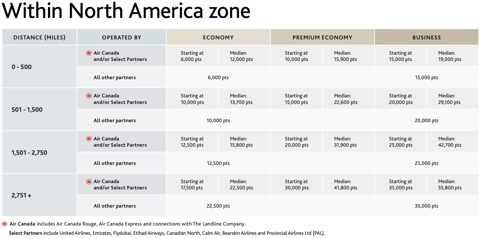 If I can find flights with Air Canada and/or Select Partners that price out close to the “Starting at” values or at the cost listed for other partner airlines, I know I’m getting a great deal.