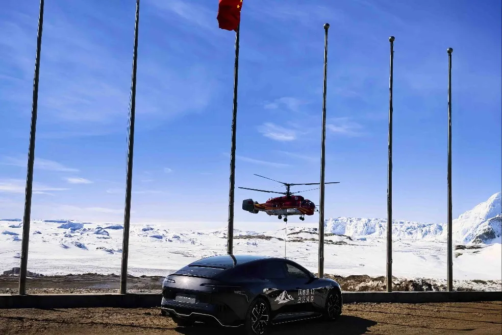 В 6 сутринта (пекинско време) на 7 декември луксозен седан AVATR 12, произведен в Чунцин, беше леко спуснат върху ледената покривка на Антарктида от кораба за полярни изследвания Сюелонготбелязвайки началото на мисията си за полярни тестове в централната гара на Антарктика. Това е първият NEV в света, който стъпва на замръзналия континент. [Photo provided to chinadaily.com.cn]