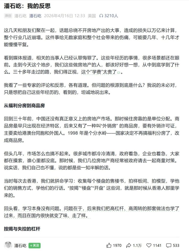 Имотният магнат Pan Shiyi отправи рядка критика към сектора на недвижимите имоти в Китай, описвайки модела му на развитие като „схема на Понци“ и призовавайки индустрията да възстанови целостта и да защити по-добре купувачите на жилища, само дни след като процес за измама видя признаване на виновен от основателя на China Evergrande – гигантът с…