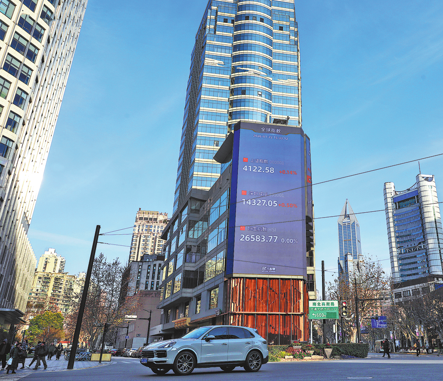 Основните фондови индекси на Китай, изложени на билборд в Шанхай. CHINA DAILY