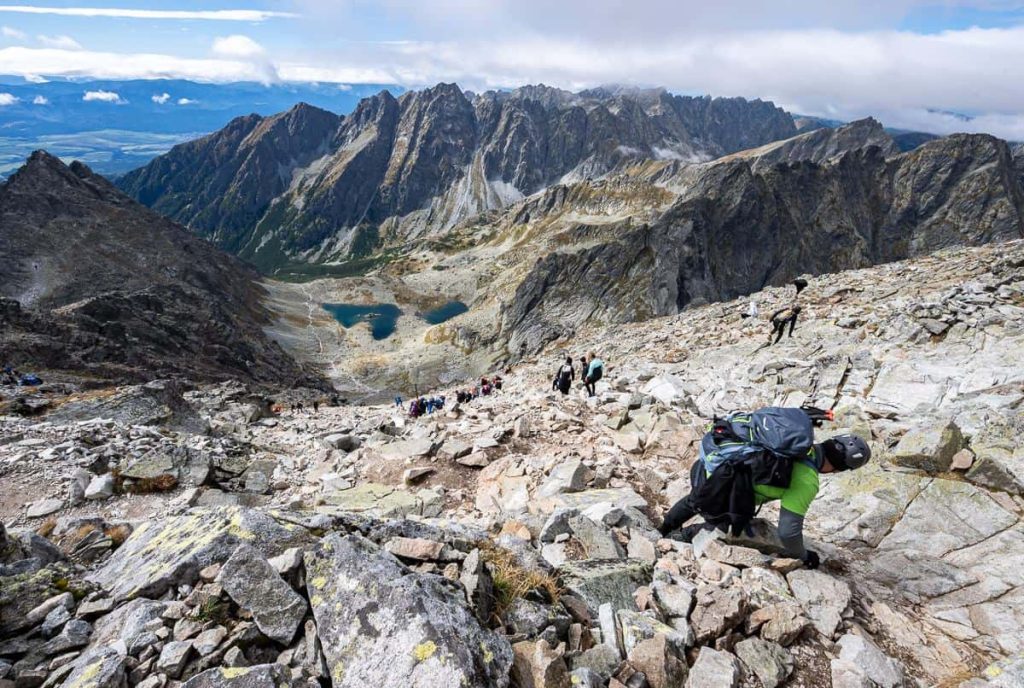 Rysy is not a high mountain peak by world standards – topping out at just 2,499 metres (8,199 feet) where there’s plenty of oxygen and no real hardship involved. But it’s no walk in the park either – despite the phenomenal number of hikers we saw. From Štrbské pleso, where we started, it’s a 21-kilometre return hike with approximately 1,370 m (4,495 feet) of elevation gain. Regardless of the hundreds of hikers we saw, it was a great mountain to climb. I just prefer fewer people and bottlenecks.