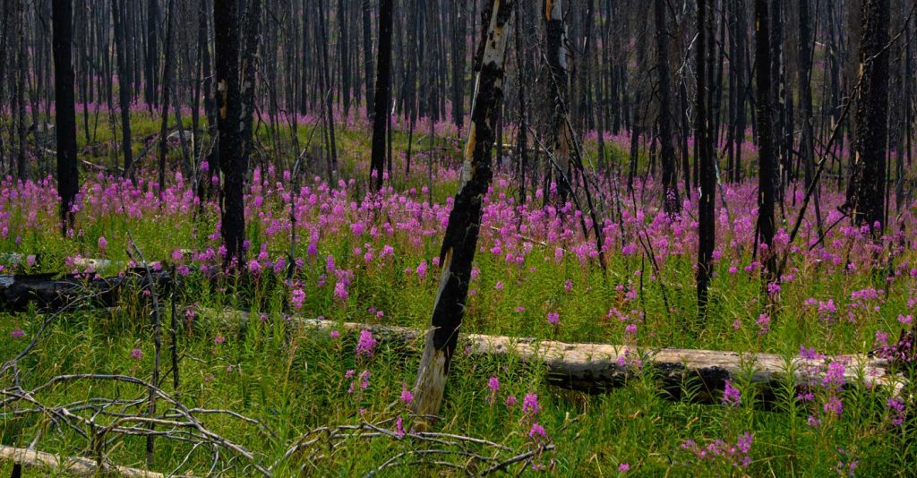 Fireweed is often the first plant to grow in the aftermath of wildfires